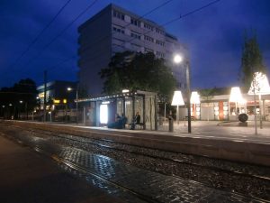 Die Voraussetzungen waren speziell: Während das Budget für die Platzbeleuchtung großzügig war, für die Haltestellengestaltung jedoch sehr eng, entwickelten wir zusammen mit den Lichtplanern von Lunalicht eine Pergola zwischen hohen und niedrigen Mastleuchten. Leider wurde die Lösung letztendlich als zu „großstädtisch“ abgelehnt.