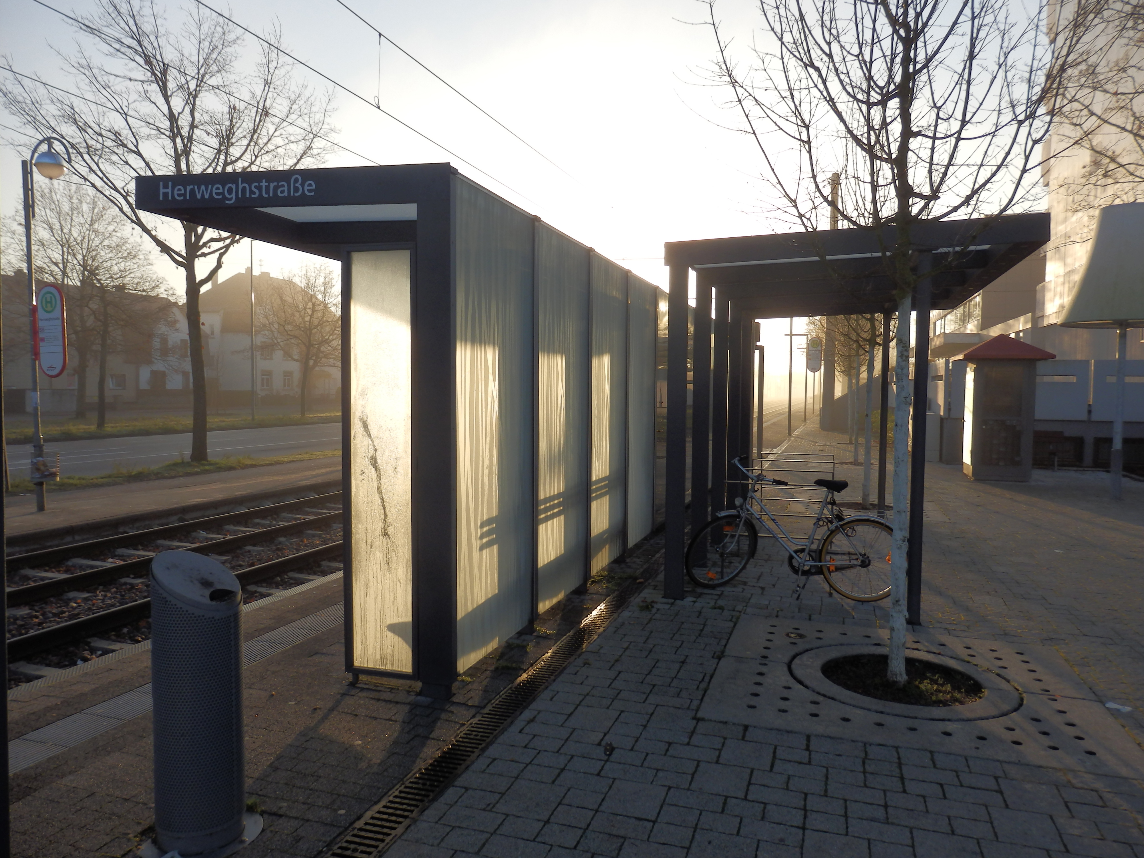 Im Auftrag der Verkehrsbetriebe Karlsruhe entwarfen wir einen neuen Haltestellendach-Prototyp als Weiterentwicklung der Nordstadt-Haltestellendächer.
