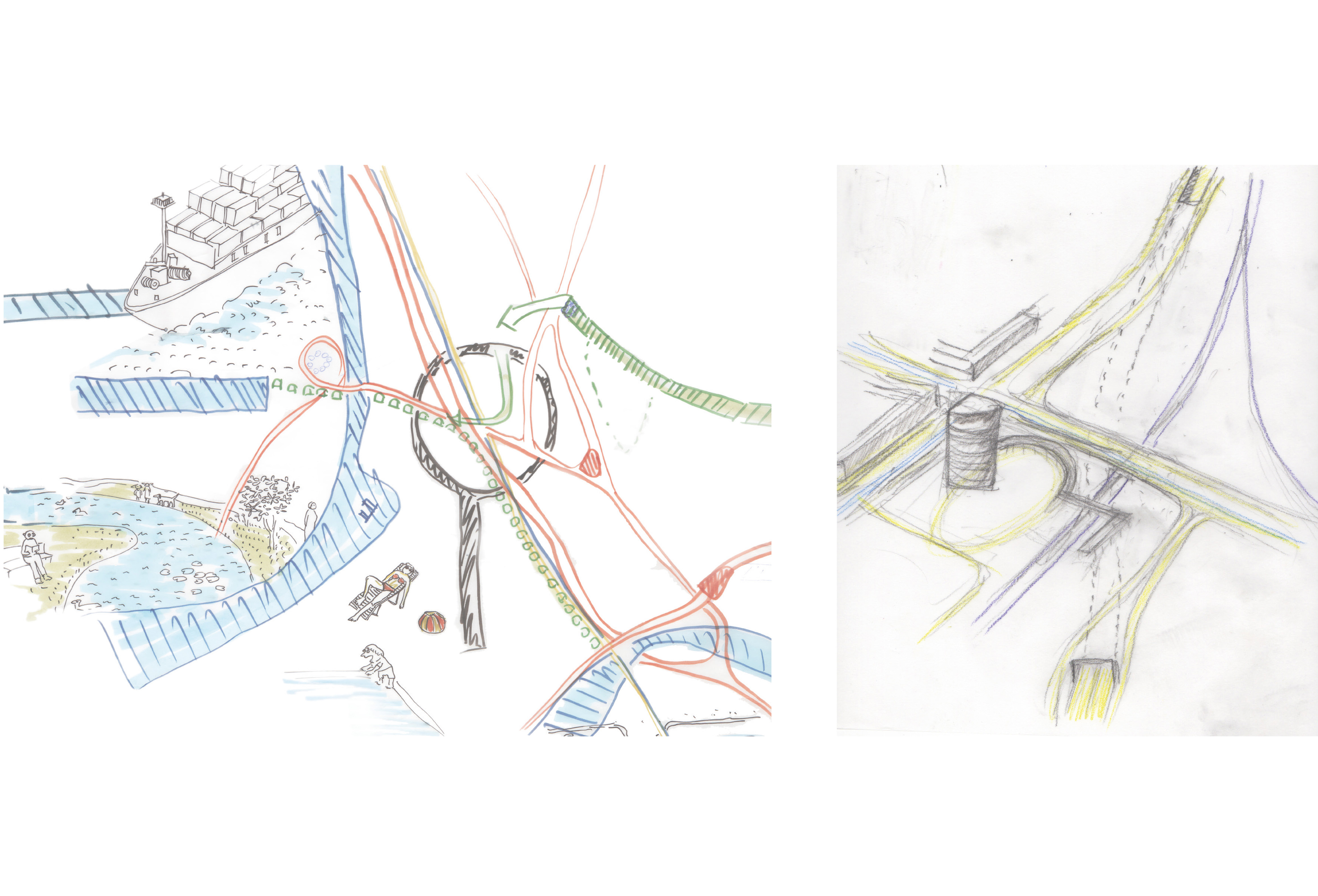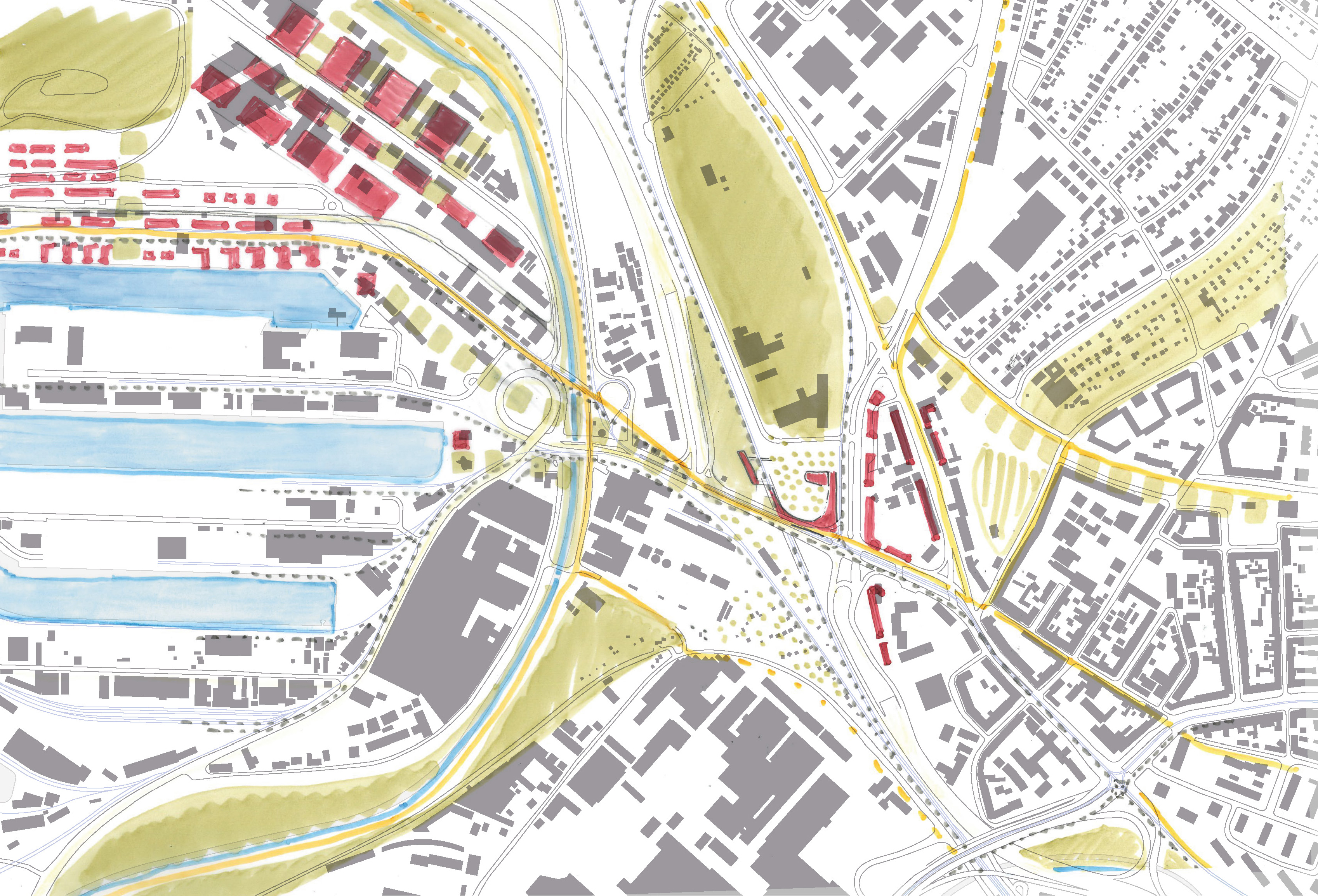Insgesamt entsteht zwischen Stadt und Rheinhafen ein neuer Zwischenraum, der durch einen Mix aus Verkehrsflächen, Landschaftsräumen und Freizeitflächen geprägt wird.