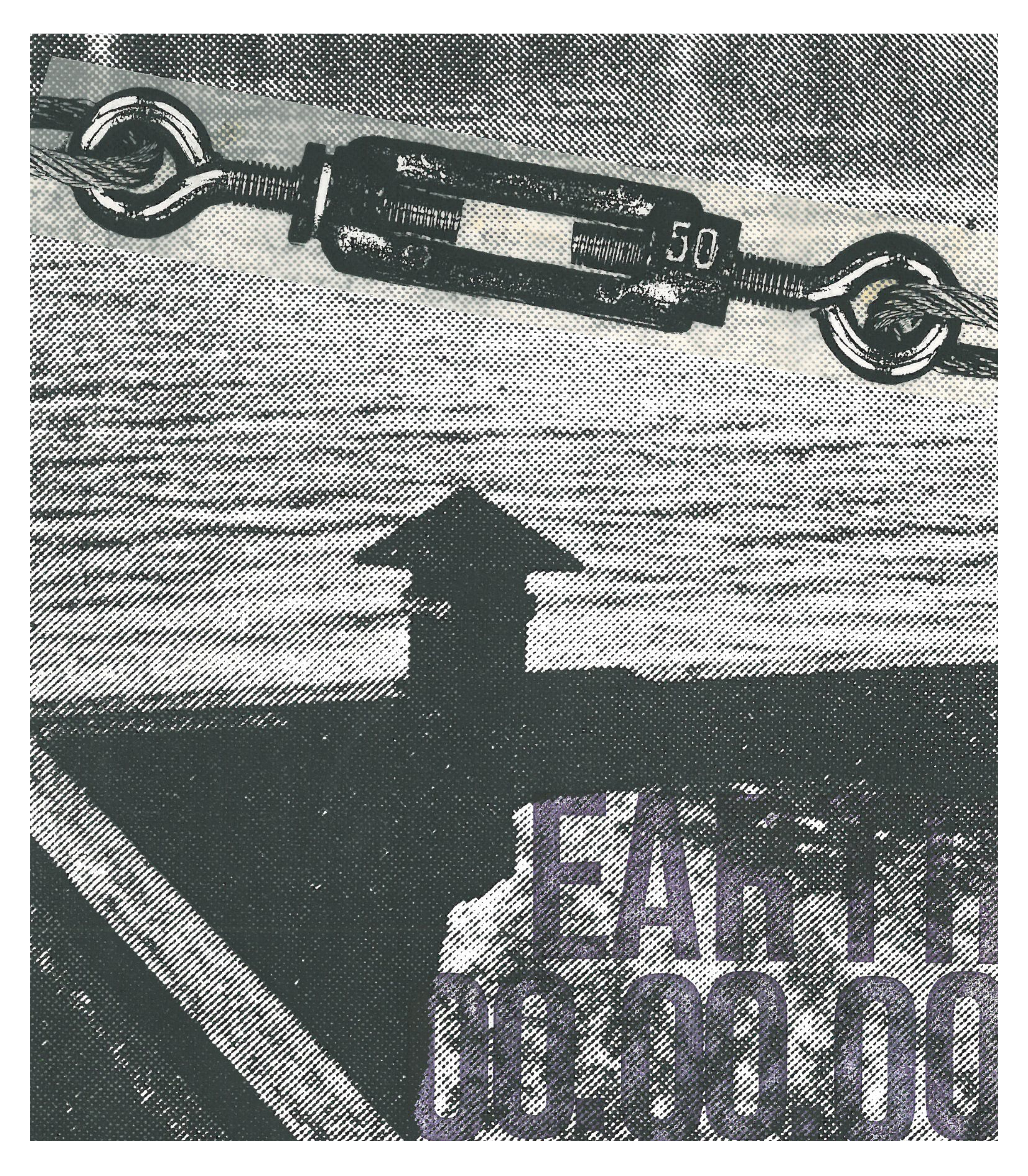Both islands are penetrated by pipes, in which the steelm rope runs. The islands are only medium for a possible change, their own physical state doesn’t change. On the continent pipes penetrate the ground, following the sea level in an invisible line.